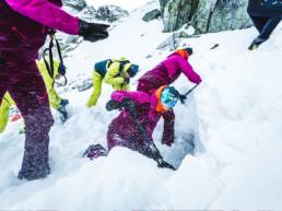 Jesteśmy grupą górskich pasjonatów, którzy w górach spędzają większą część każdego roku. Nasz zespół tworzą przewodnicy tatrzańscy I, II i III klasy, przewodnicy beskidzcy i IVBV, ratownicy TOPR i GOPR, instruktorzy ratownictwa górskiego i ratownicy medyczni, instruktorzy narciarstwa wysokogórskiego PZA, instruktorzy narciarstwa PZN, zjazdowego i biegowego, czy utytułowani skialpiniści, co z niejednej Pierra Menta czy Patrouille des Glaciers jechali. Według nas to najlepsza załoga górska w Polsce. Bo pracują z nami m.in. tak znamienite postaci jak Tomek Nodzyński, wysokogórski przewodnik tatrzański I klasy z ponad 30-letnim stażem, wiceprzewodniczący Państwowej Komisji Egzaminacyjnej dla Przewodników Tatrzańskich, szef naszych kursów lawinowych i turystycznych, czy legenda himalaizmu Ryszard Gajewski, trzeci zimowy zdobywca ośmiotysięcznika na świecie.